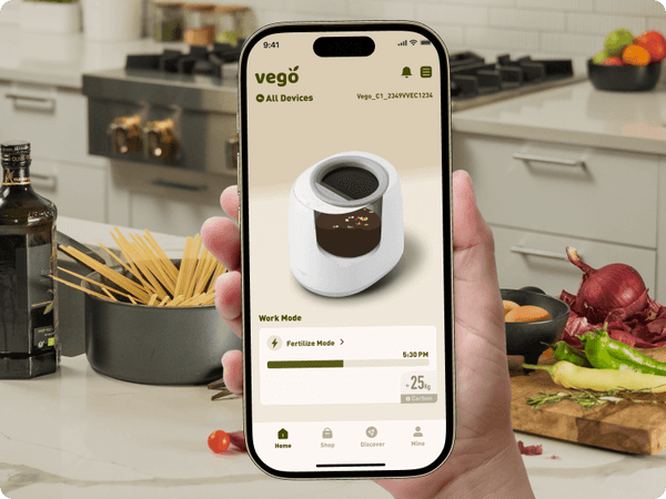 At Vego, we believe in sustainable living and encourage individuals to do the same. Because gardeners grow their own food, we aim to give them the tools they need to convert their kitchen waste into compost to nourish their gardens. Our indoor composter is designed to make breaking down food and plant waste a hassle-free experience, with a focus on low noise and user-friendly features. Our tabletop composter will easily fit into your kitchen, providing an efficient and convenient way to recycle waste and enrich your garden soil.